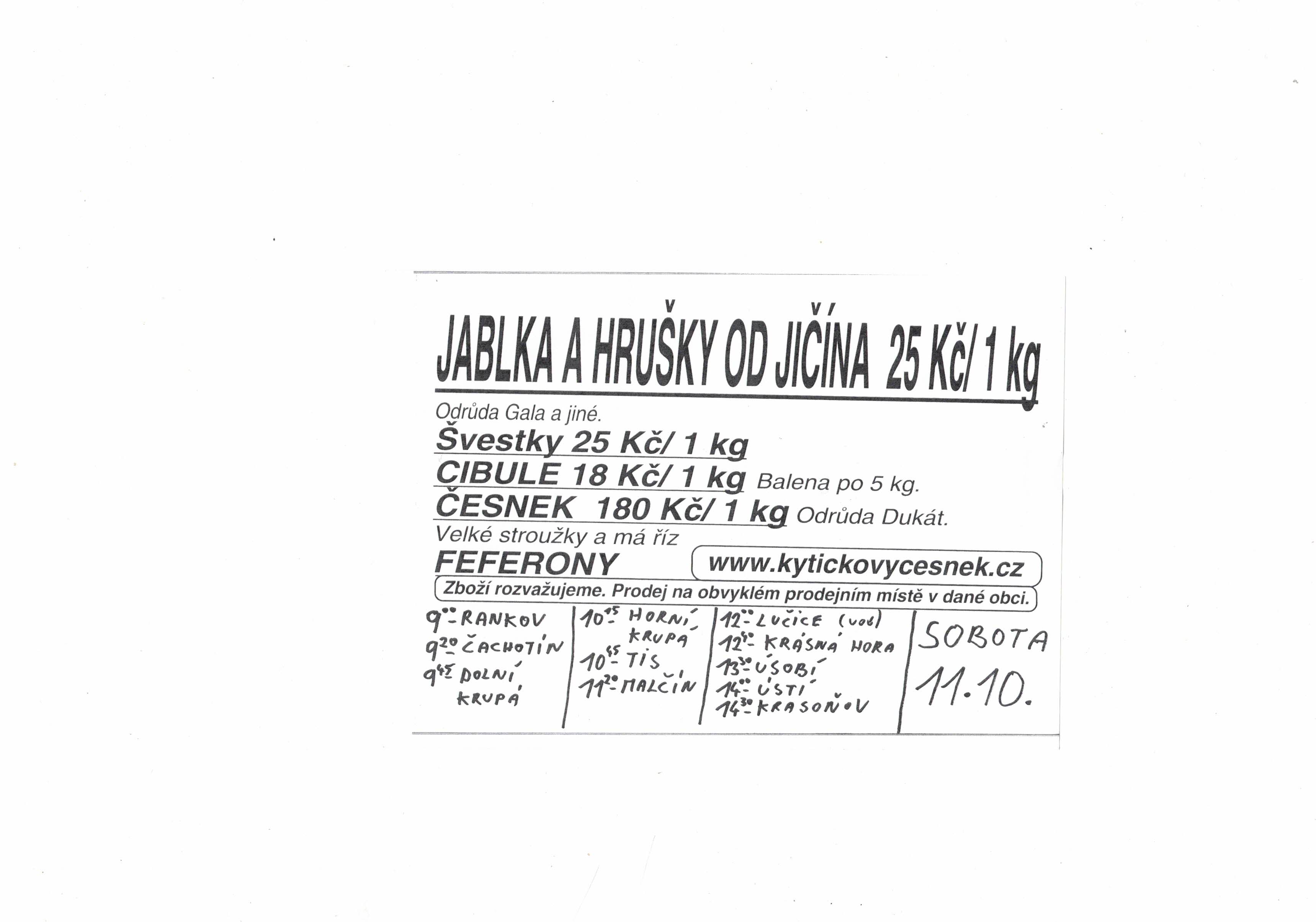 / Prodej jablek, hrušek atd. dne 11.10.2025 od 9,45hod.
