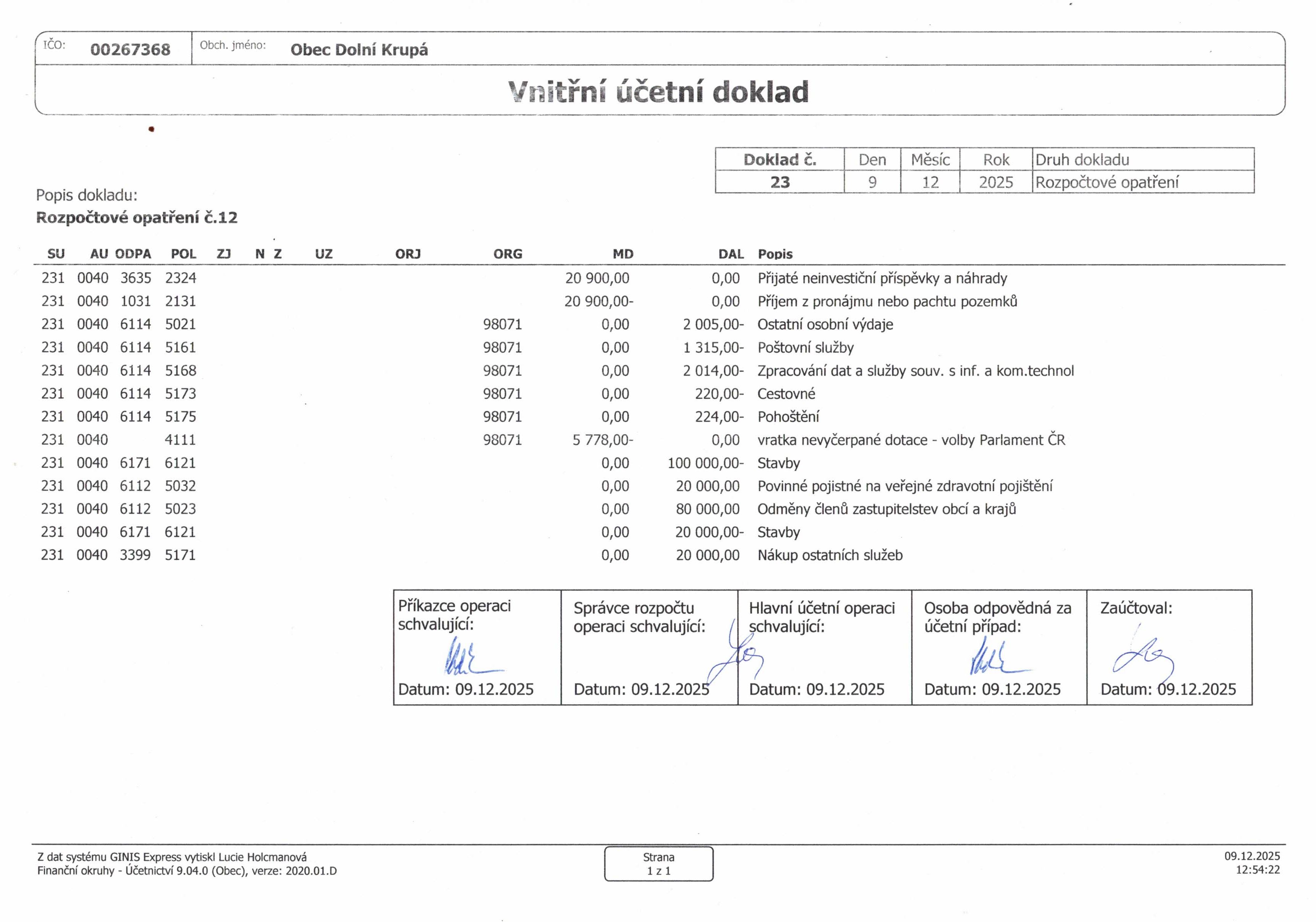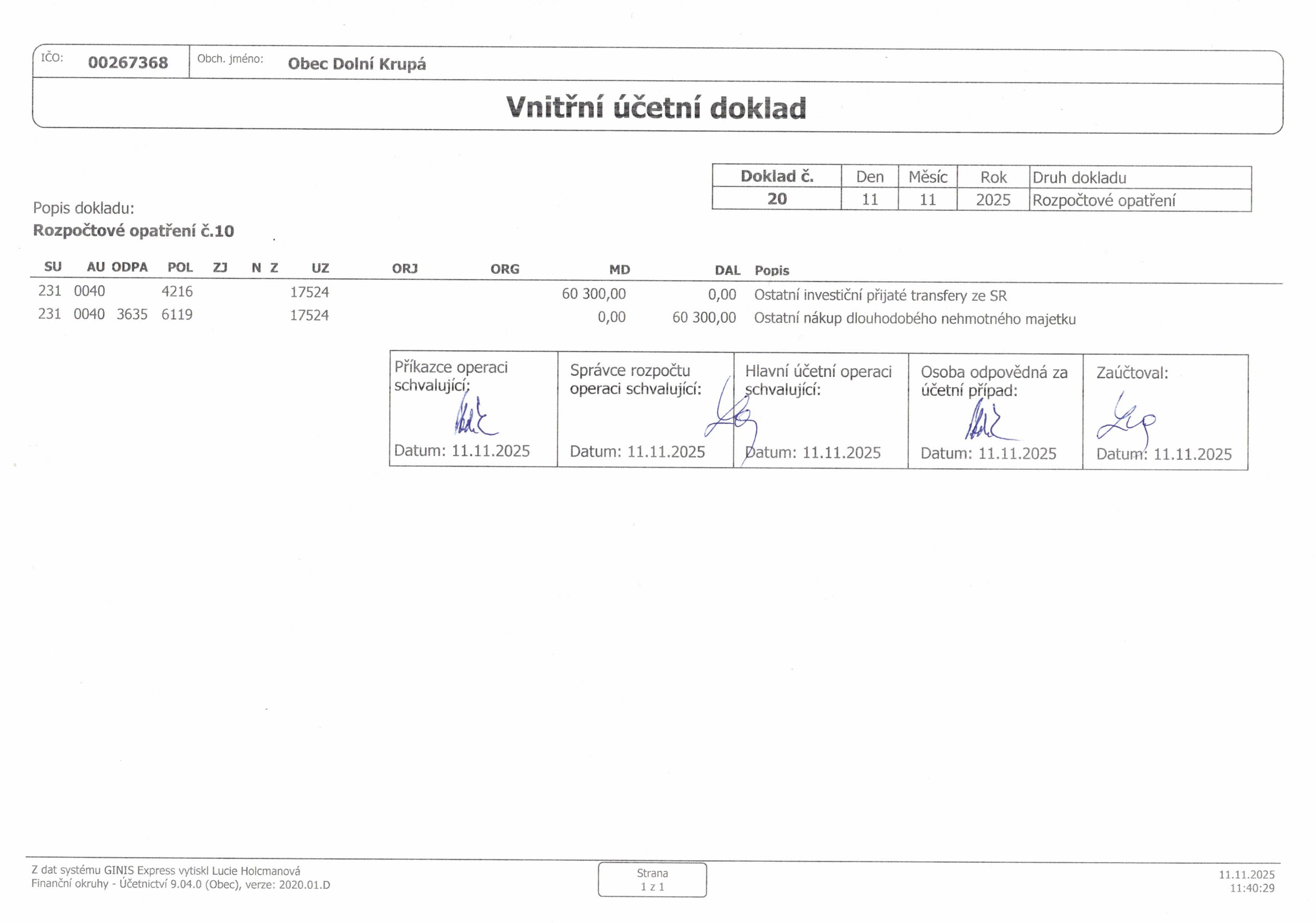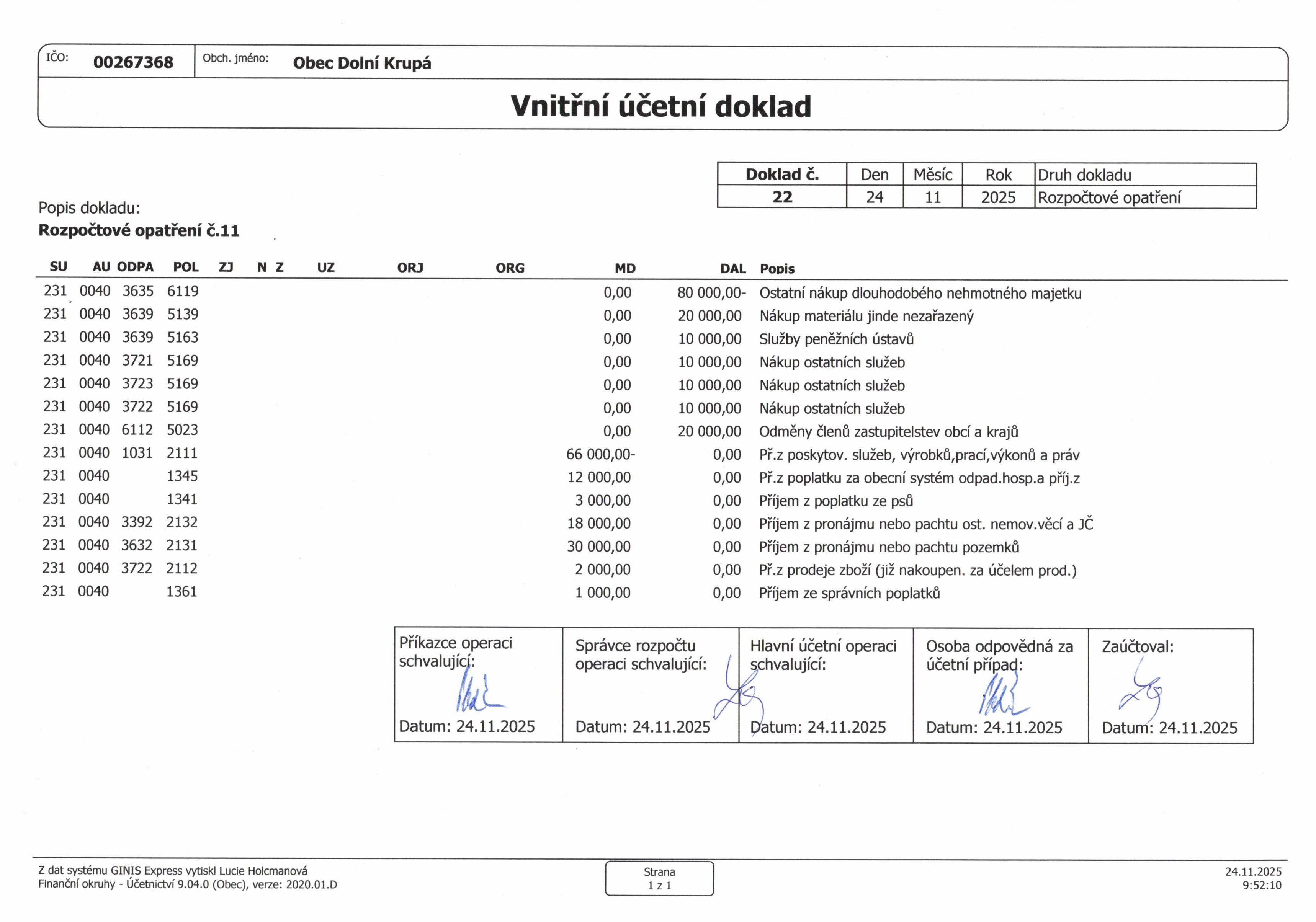 Dolní Krupá Hlavní stránka / Rozpočtová opatření 2025