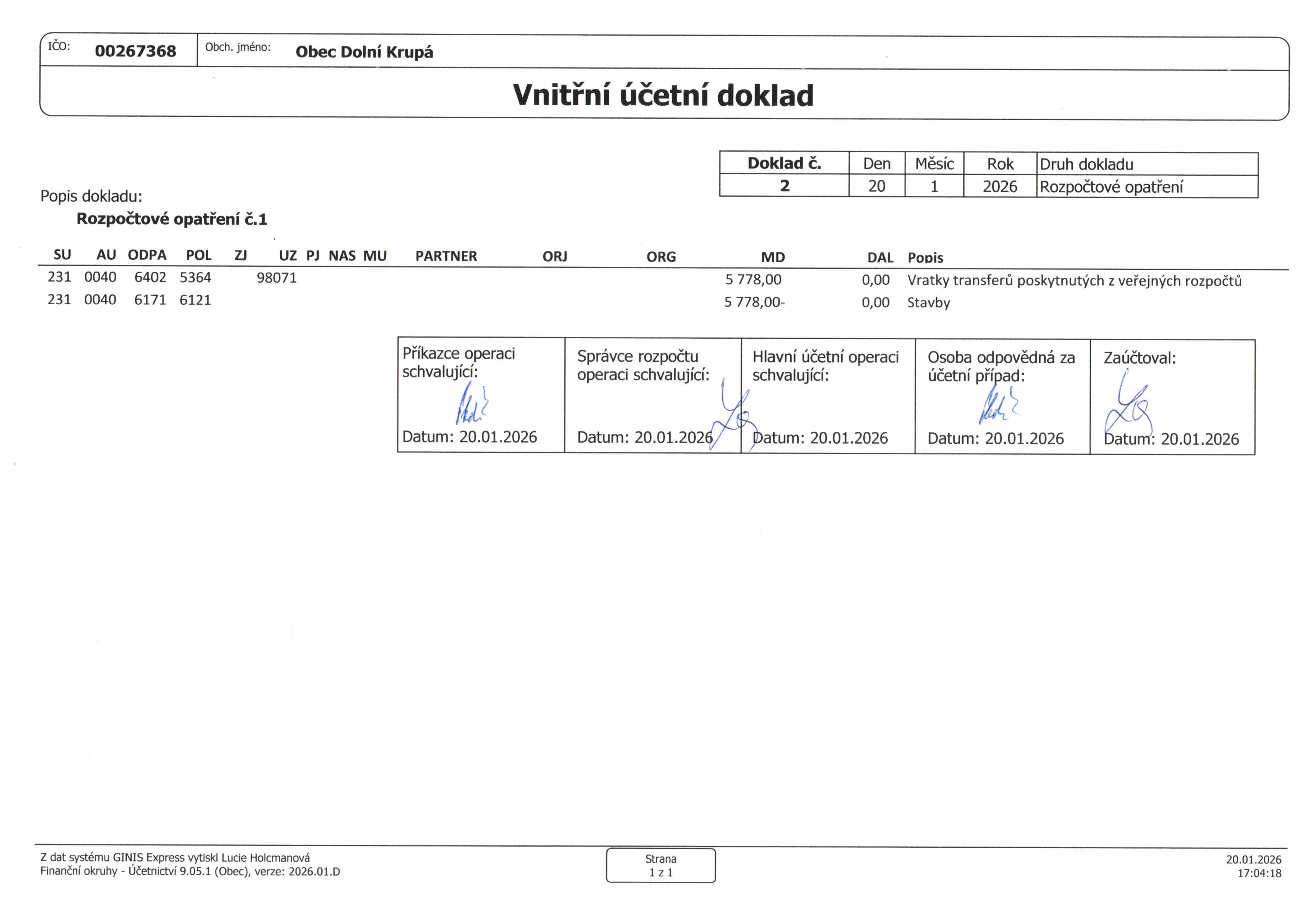 - Rozpočtové opatření č. 1 vloženo 30.1.2026 (356.46 kB)