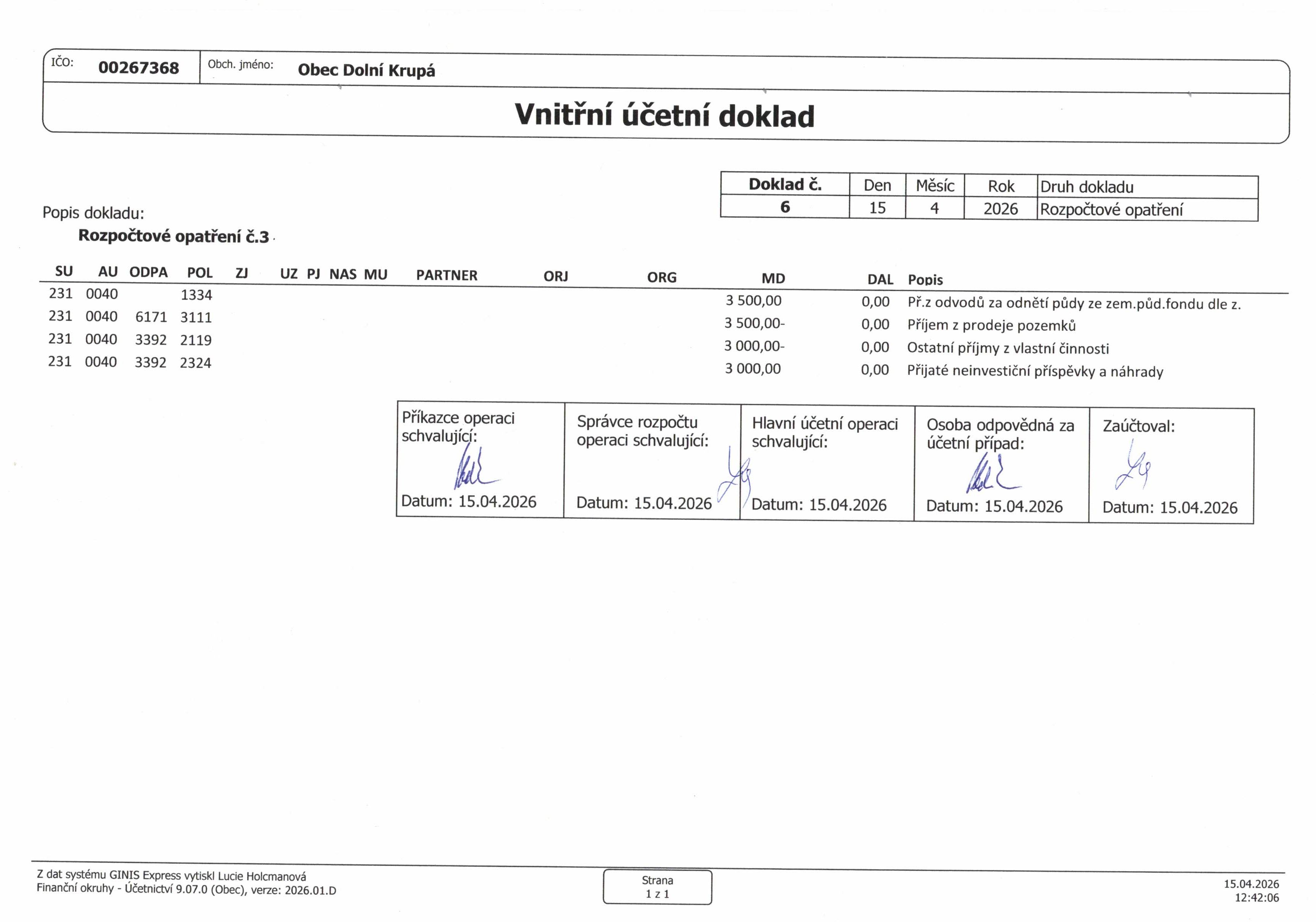 - Rozpočtové opatření č. 3 vloženo 15.4.2026 (376.74 kB)
