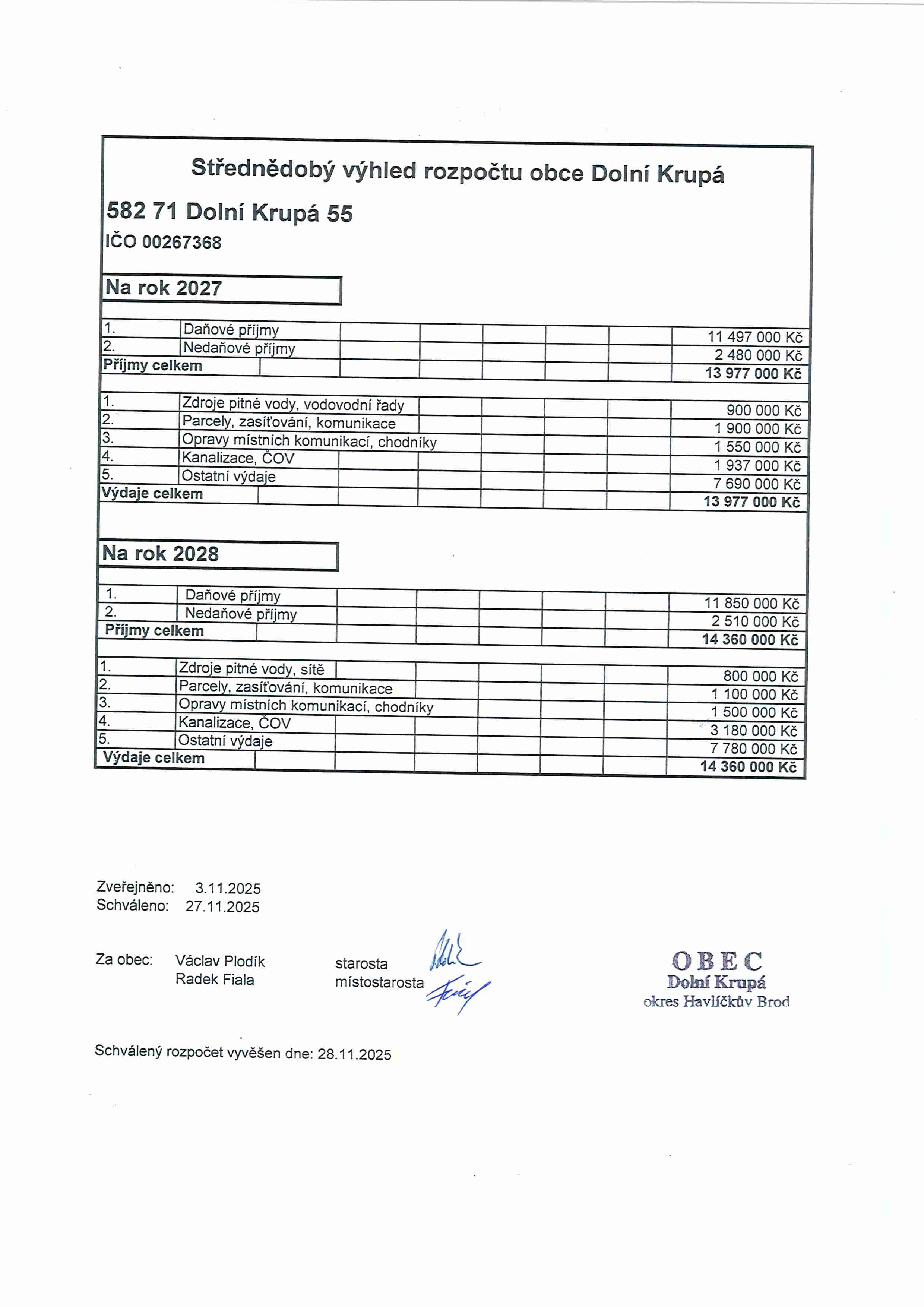- Rozpočtový výhled obce Dolní Krupá [PDF 87kB]