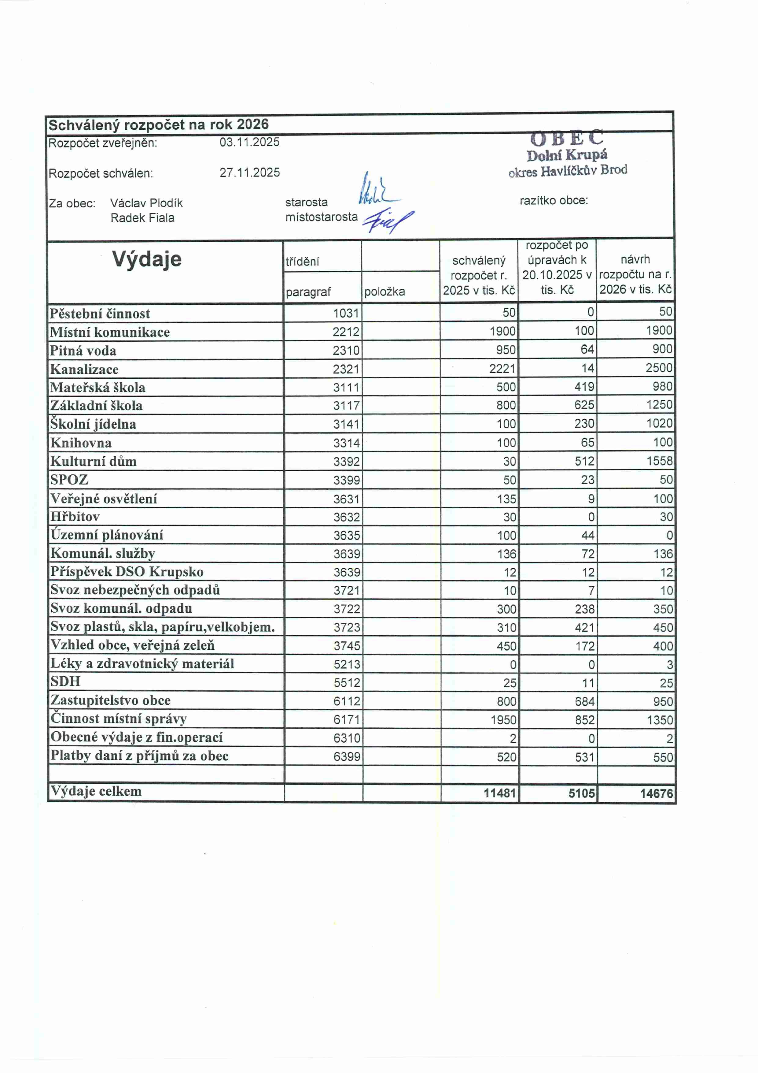 - Schválený rozpočet - Výdaje na rok 2026 vloženo 28.11.2025 [JPG 794kB]