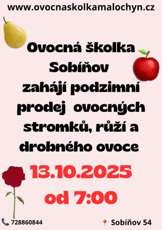 Dolní Krupá Hlavní stránka / Aktuality / Zahájení podzimního prodeje ovocných stromů, keřů a růží v Sobíňově
