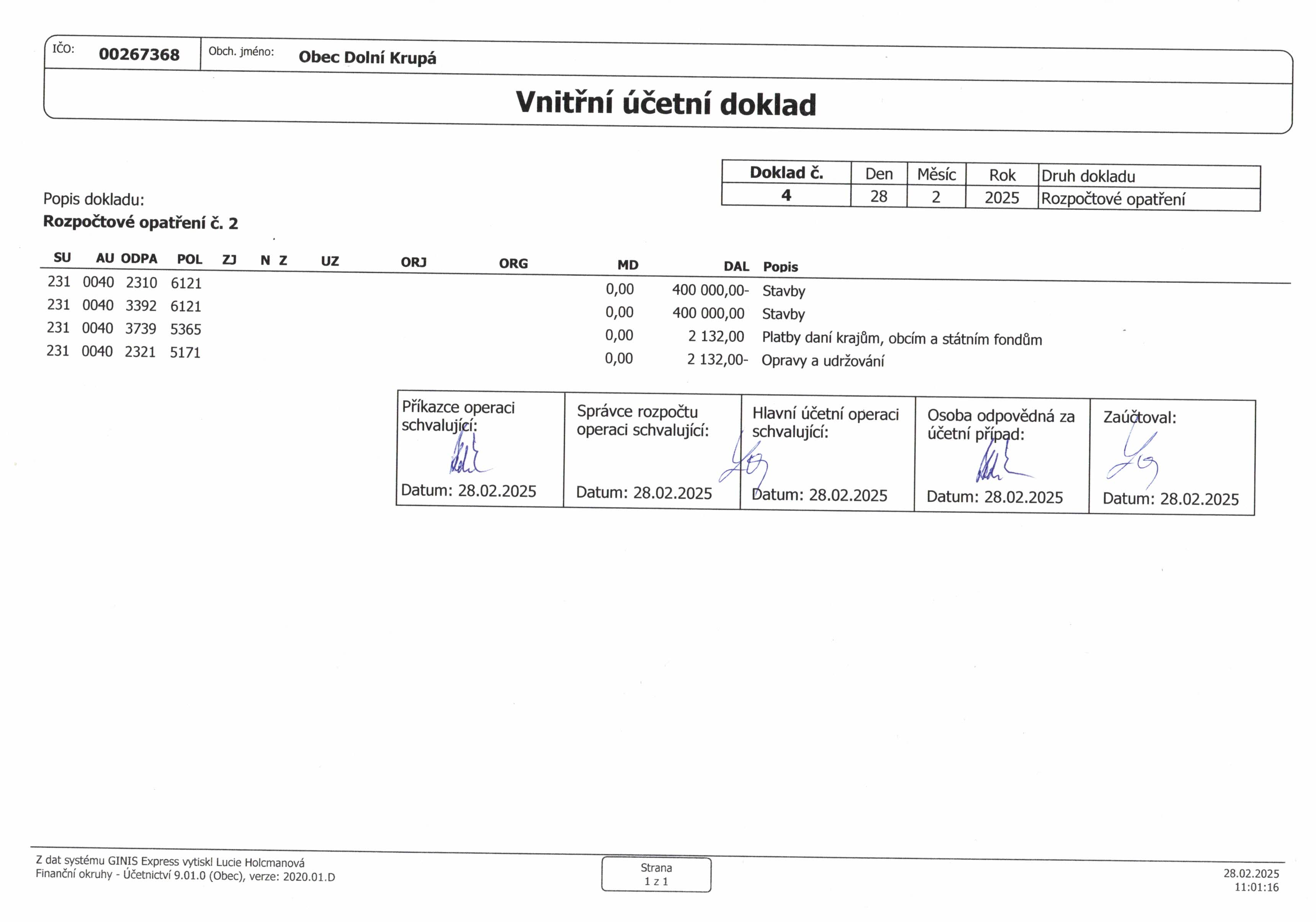Dolní Krupá Hlavní stránka / Rozpočtová opatření 2025