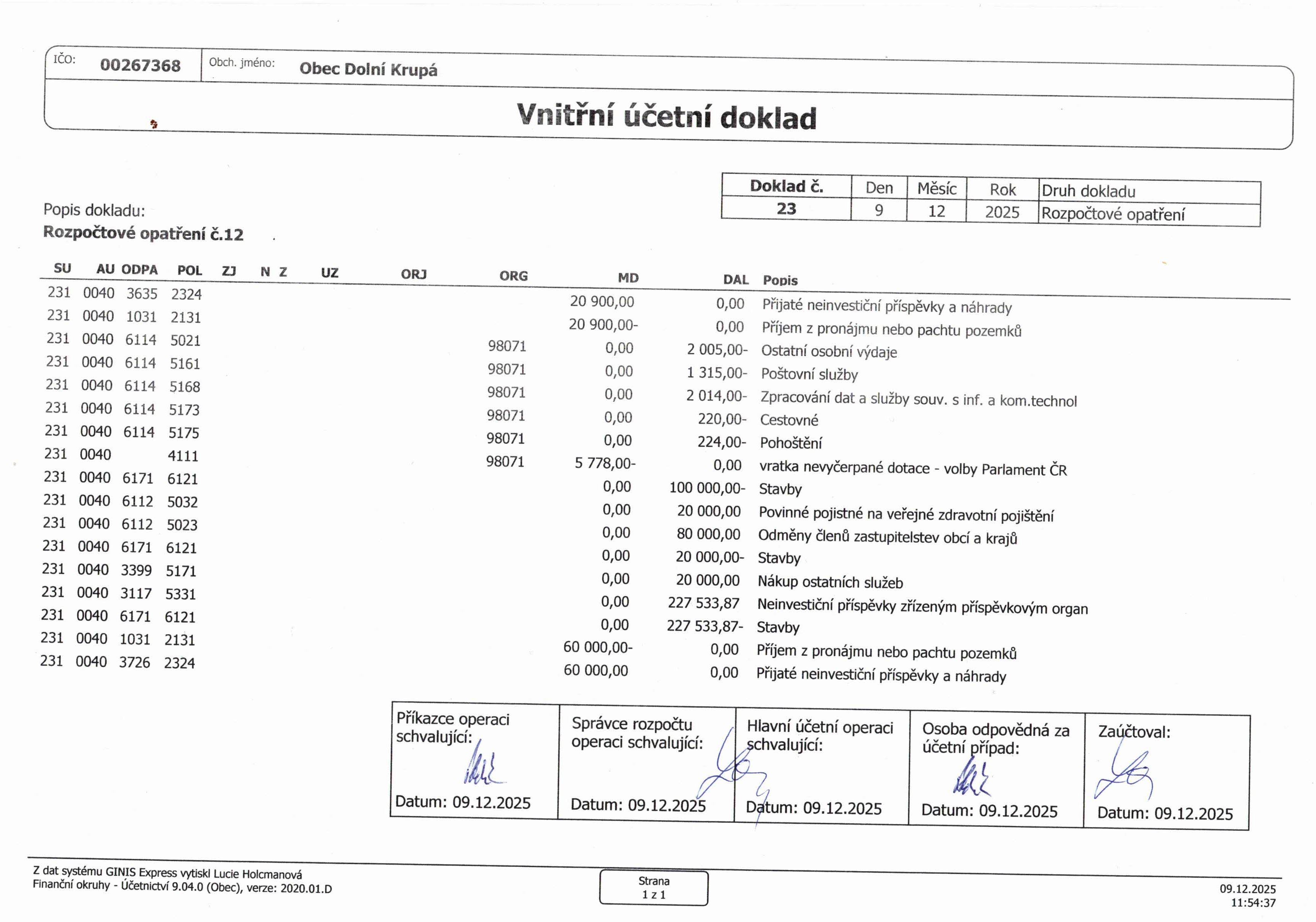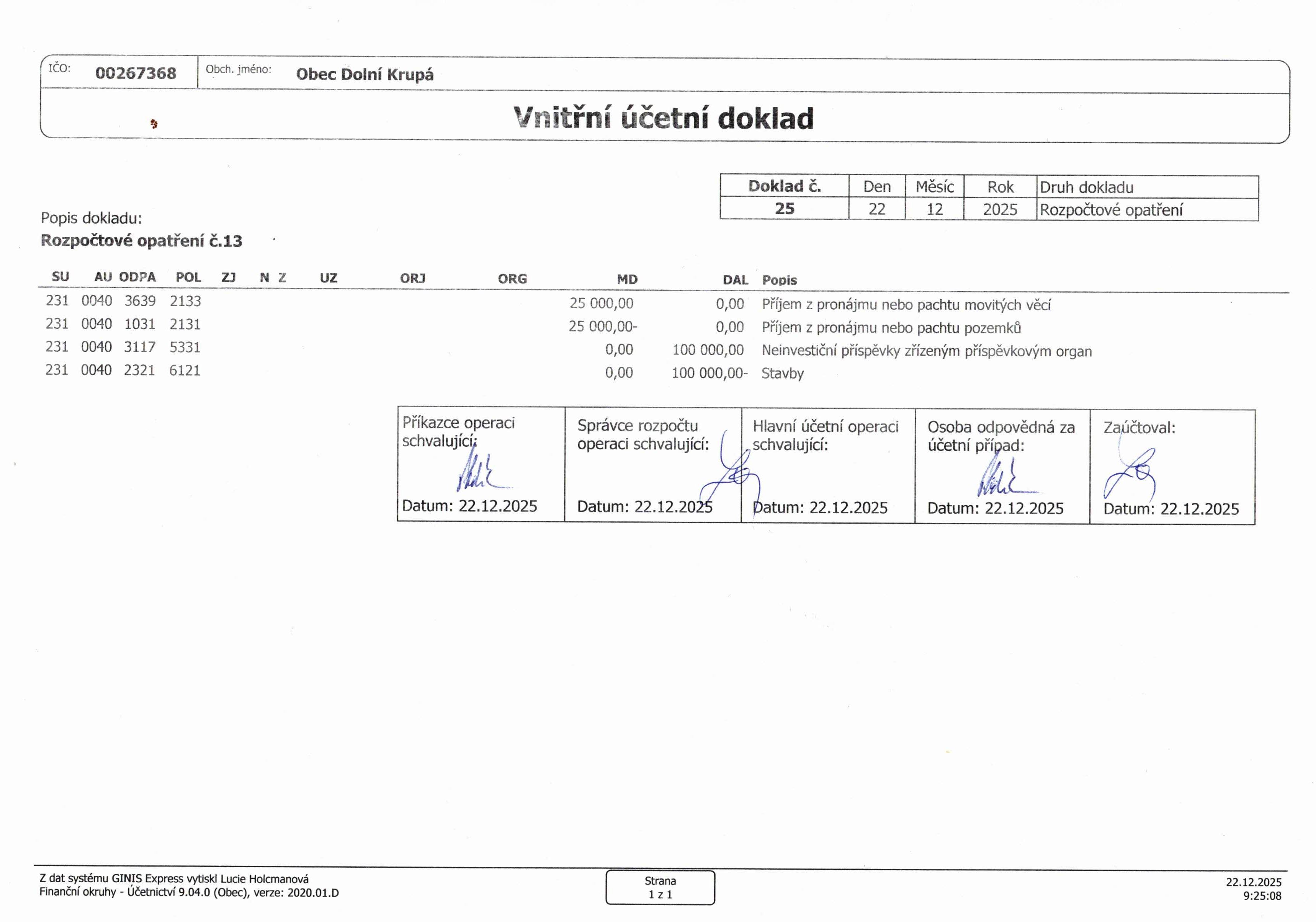 Dolní Krupá Hlavní stránka / Rozpočtová opatření 2025